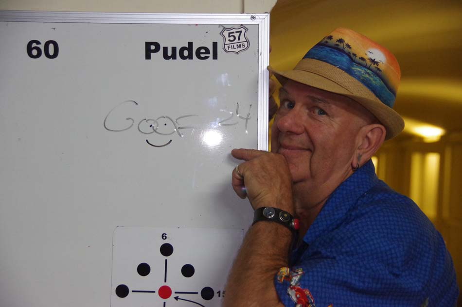 After dining on a gorgeous spread of nibbles supplied by Mel & Maelyn, many bowls, drinks & pizza; it came down to the shoot-out. Goof versus Larry. (Go Larry Go!) Yep Larry put the ball in the gutter so GOOF is the WINNER.