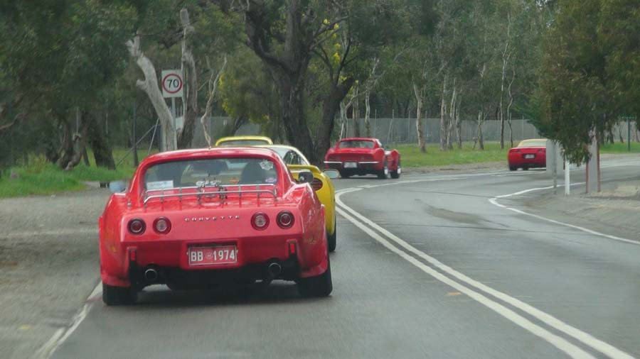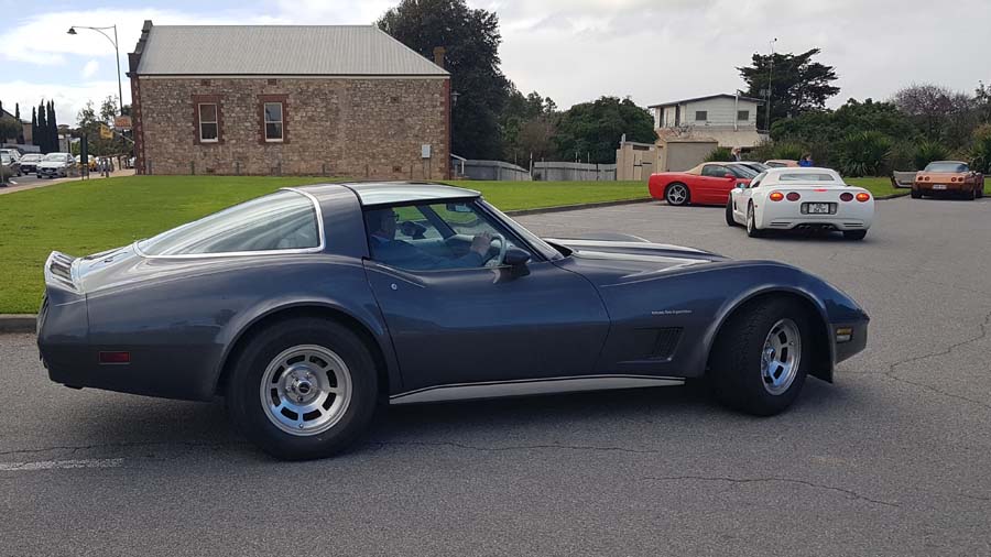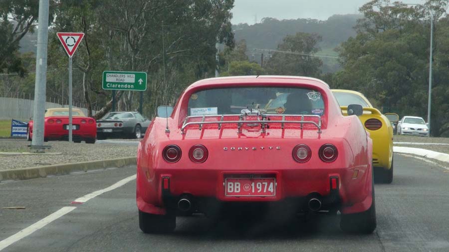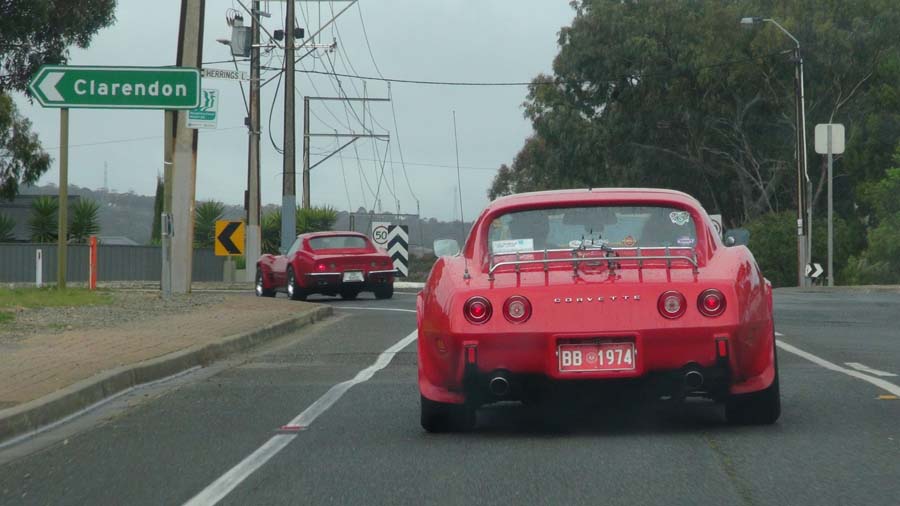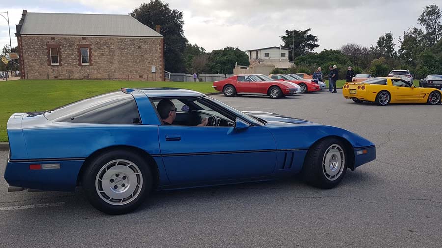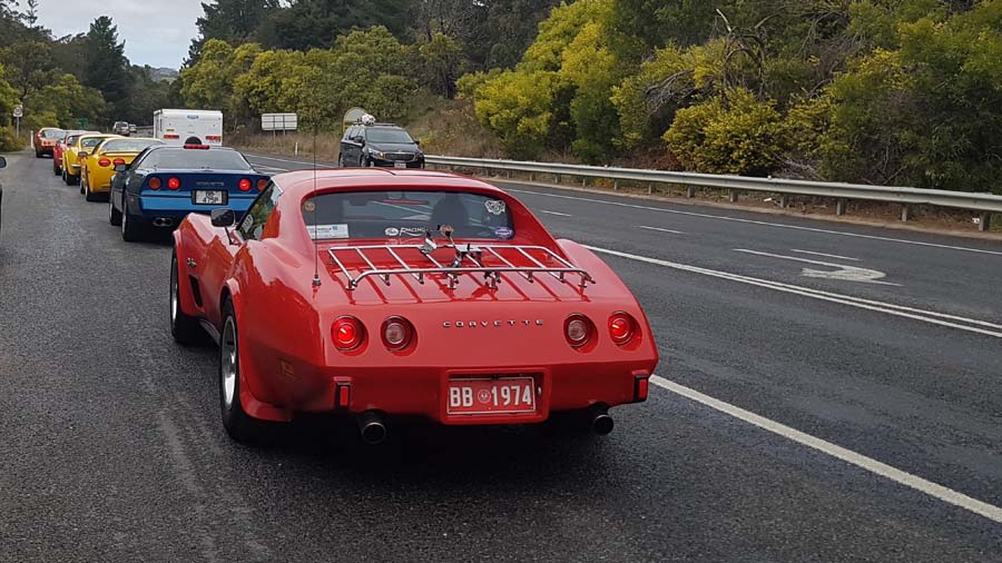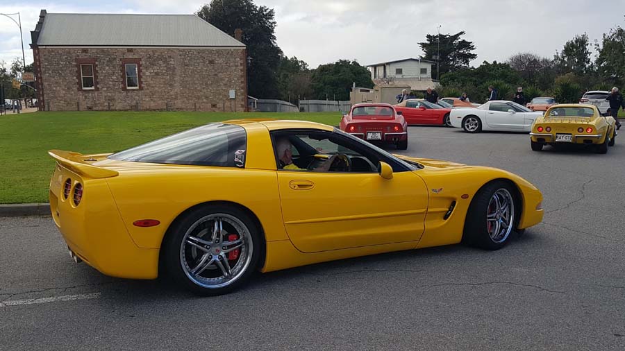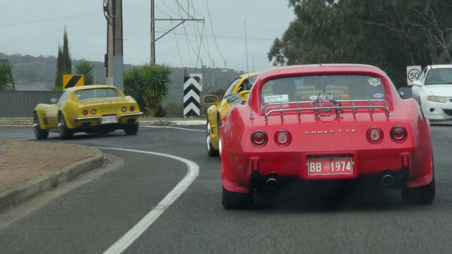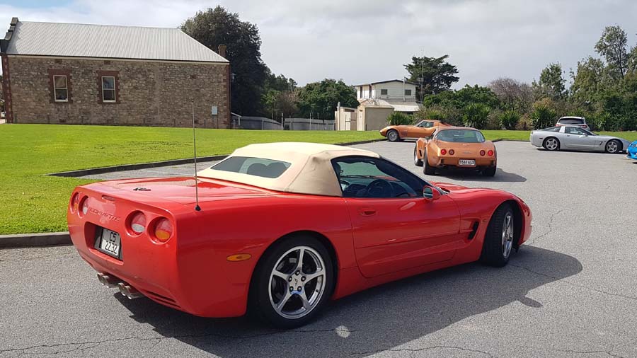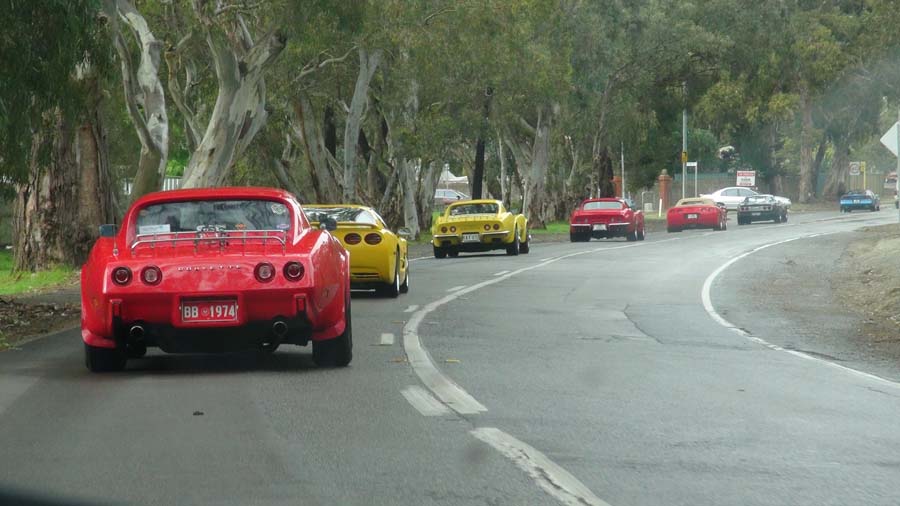 The run was to be a joint Corvette, Vincent and Honda CBX motorcycle Club event but the forecast cool day with showers and windy conditions meant the motorcycle contingent had a rethink with some, including me, opting for 4 wheels and others deferring to a better day for a ride.  Unfortunate but as one remarked, “we’re motorcyclists, not masochists.”  12 Corvettes and half a dozen daily drivers met at the Victoria Hotel on Main South Road for a 10:30 run of approx 130 Km to the Middleton Tavern for lunch.  AJ gave the briefing & handed out goodie bags of sweets to keep us nourished on the journey.
