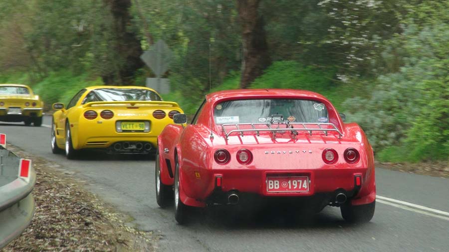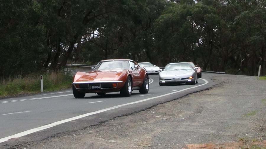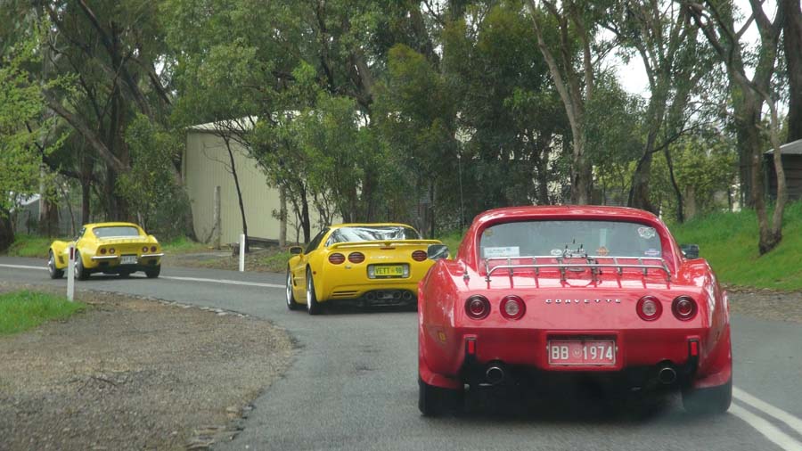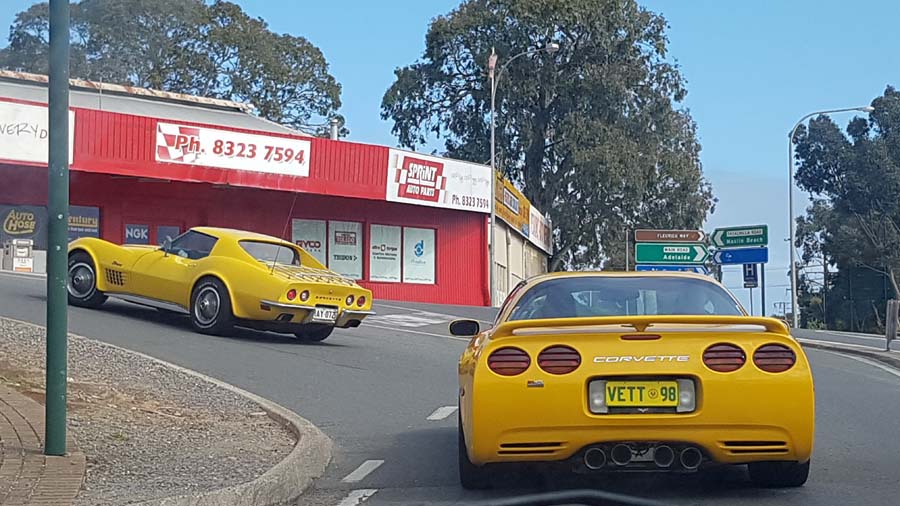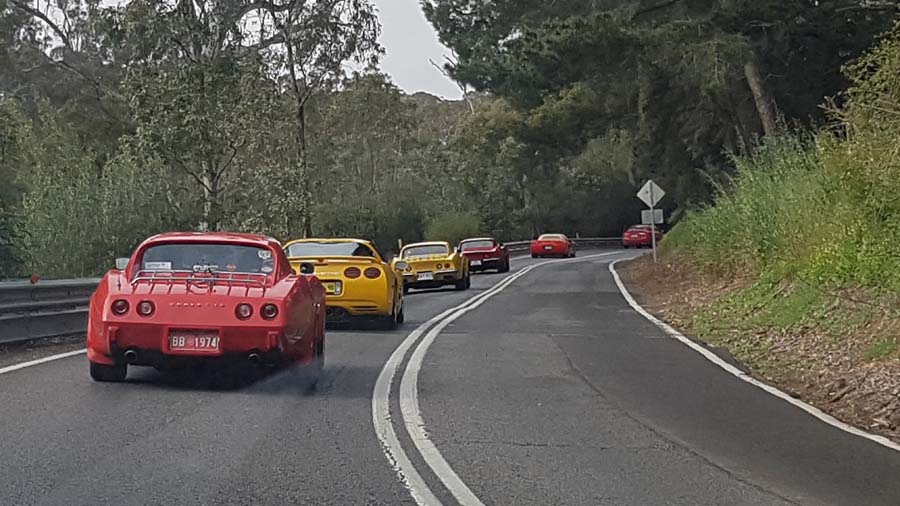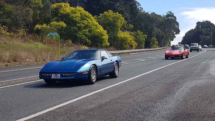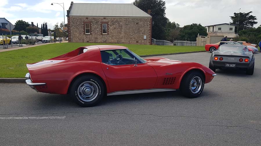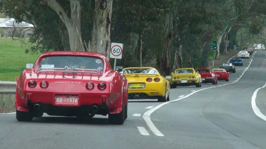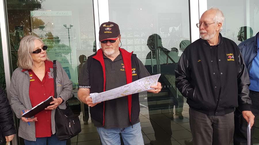 The run was to be a joint Corvette, Vincent and Honda CBX motorcycle Club event but the forecast cool day with showers and windy conditions meant the motorcycle contingent had a rethink with some, including me, opting for 4 wheels and others deferring to a better day for a ride.  Unfortunate but as one remarked, “we’re motorcyclists, not masochists.”  12 Corvettes and half a dozen daily drivers met at the Victoria Hotel on Main South Road for a 10:30 run of approx 130 Km to the Middleton Tavern for lunch.  AJ gave the briefing & handed out goodie bags of sweets to keep us nourished on the journey.
