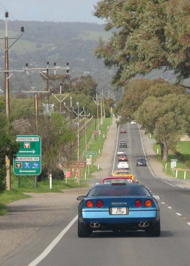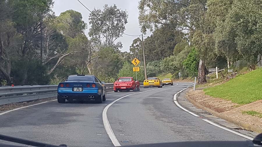 My granddaughter was my copilot for the day and fairly quickly resorted our 2 bags of sweets into the ones she liked and by default the others were mine.  Why should I be surprised!  I led the initial part of the run via Clarendon, Yankalilla and McLaren Vale with the plan to hand over the lead to AJ at the top of Willunga Hill on the old road for the second part of the run which he had planned.  All appeared to go well with most of the Corvette group staying together.  There were a couple of minor glitches that necessitated short stops for 2 of the Corvettes and consequently no AJ in his Crewman or tail end Charlie Graham and Debbie Johns when we stopped at the top of Willunga Hill.