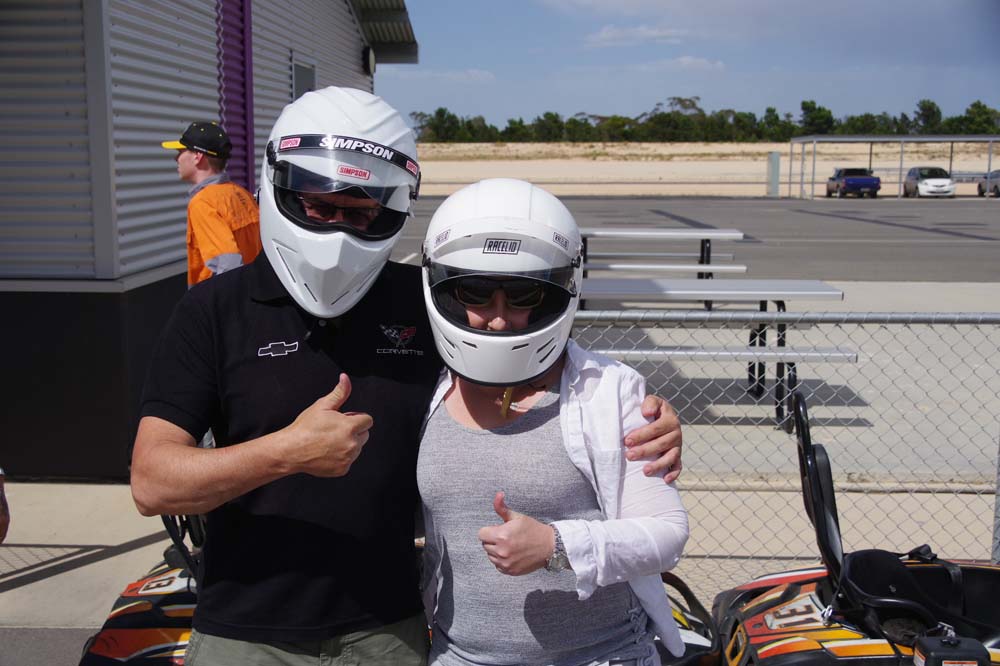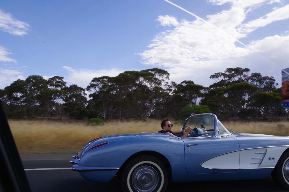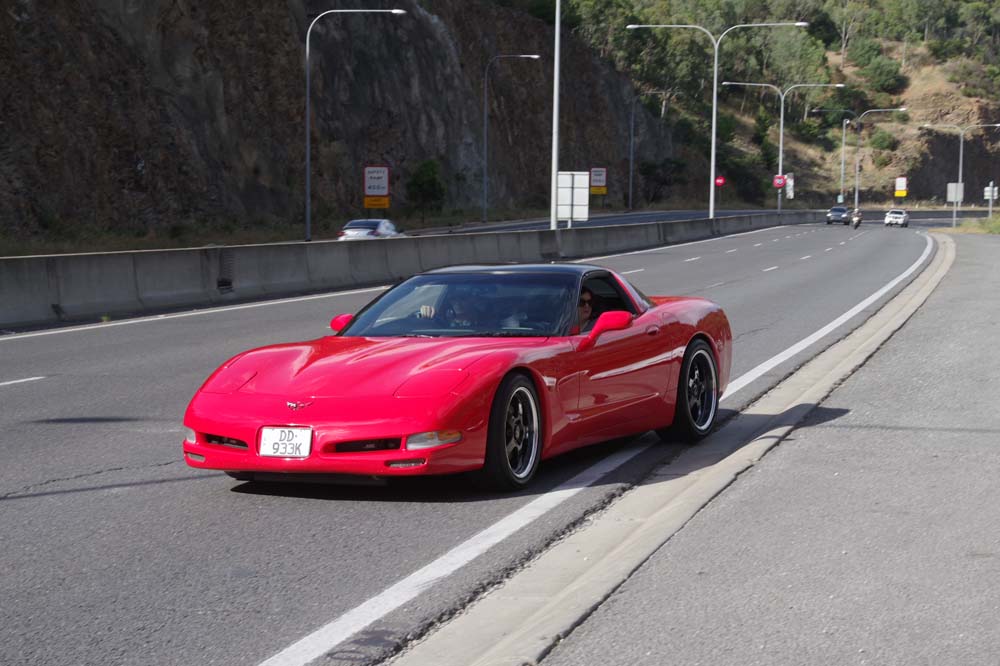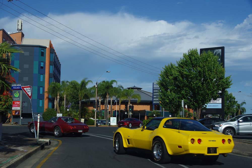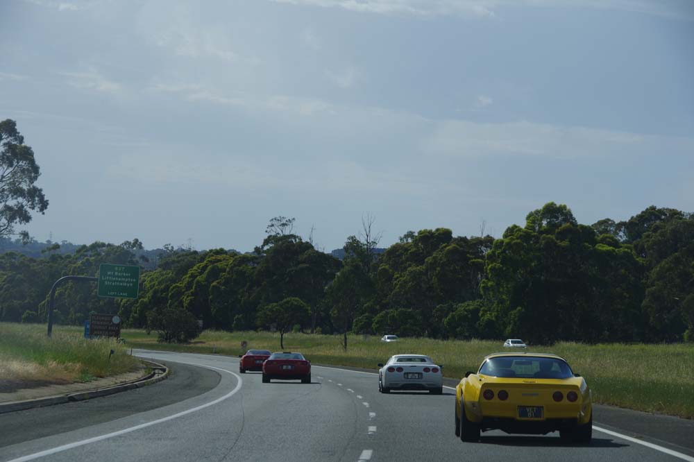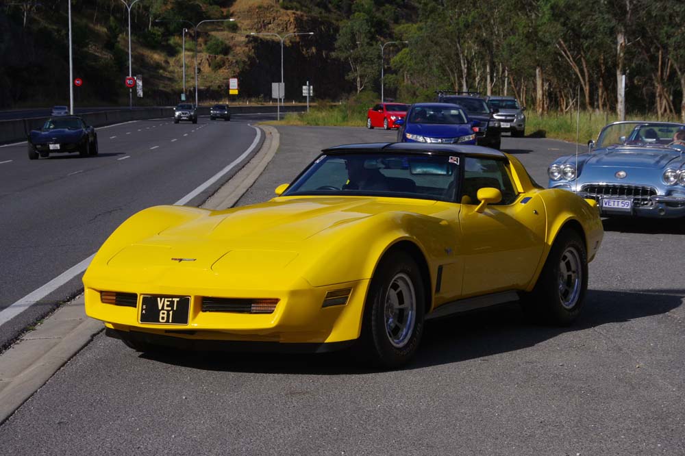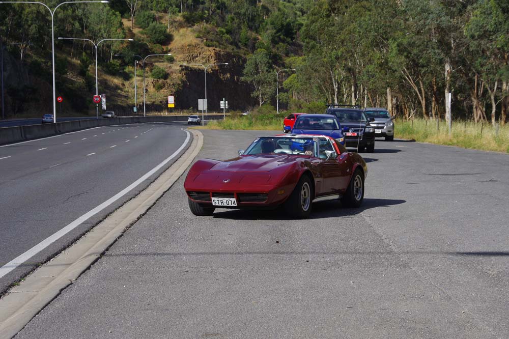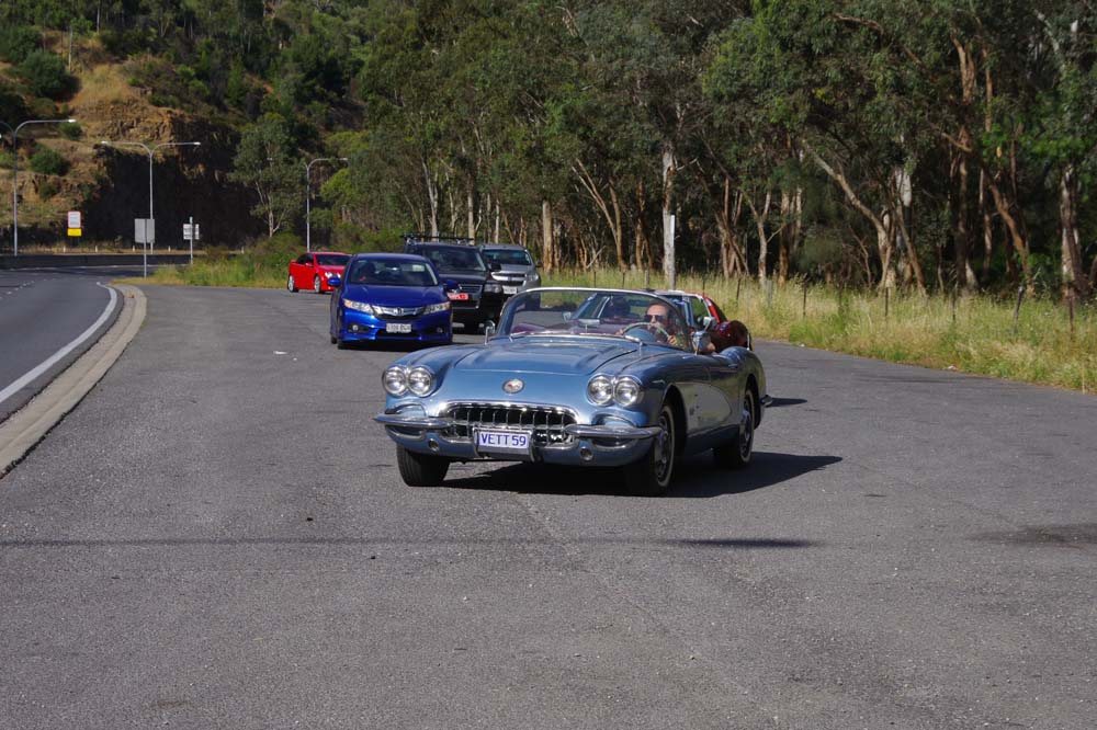 With a forecast top temperature at Tailem Bend of 40 degrees plus the possibility of thunder showers, plus a couple of mechanical issues, there were a few less Corvettes and a few more daily drivers at our starting point of Frewville Foodland. With a full day of bookings, The Bend asked that we be there by 9.45am so a departure of 8.30am from Adelaide was required. Too early for the coffee shop to be open, and no stops on the way. That's a rarity but we all survived and arrived on time, picking a couple of extras up on the way and meeting Darle and Cheryl there who travelled from Monash the day before, staying at the track in the new Hotel and watching some car racing from their balcony.