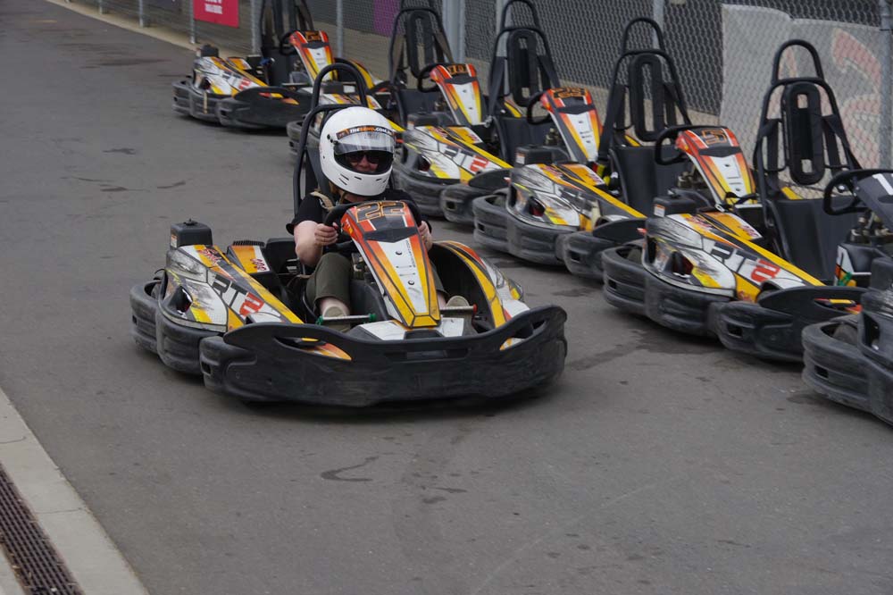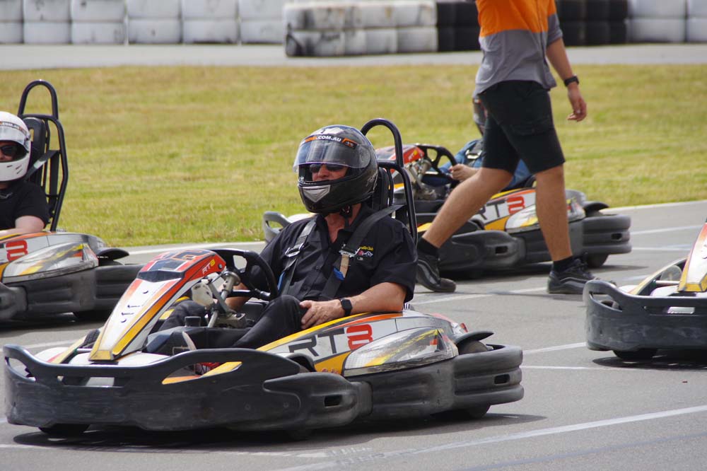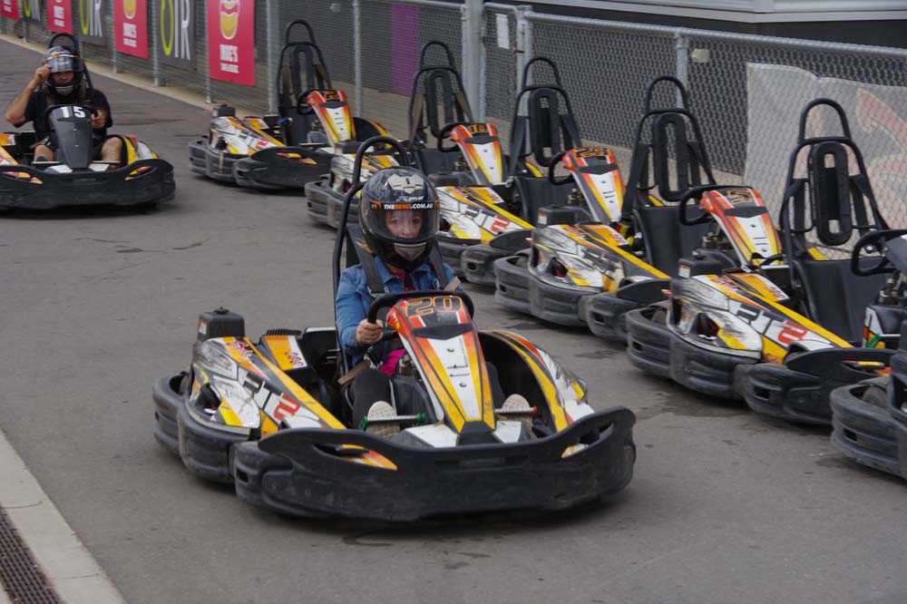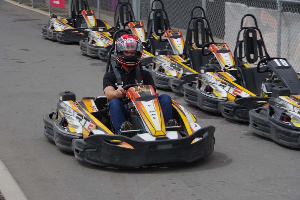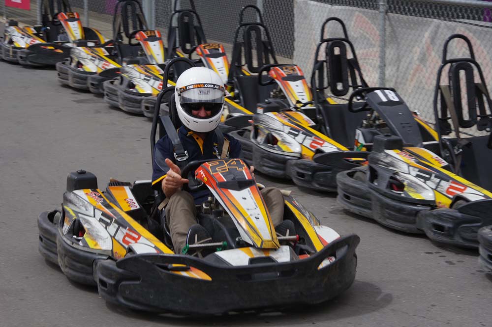 After the check in and signing of waivers, so if we happened to injure ourselves it was our problem not the Bend's, it was into the briefing room, watch a short video of what not to do (some didn't understand that part) and then 17 of us climbed into the karts. Adjustable seats and pedals made life a bit easier for those of a shorter stature.