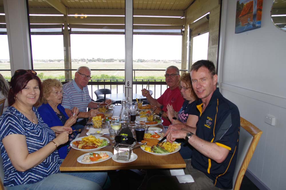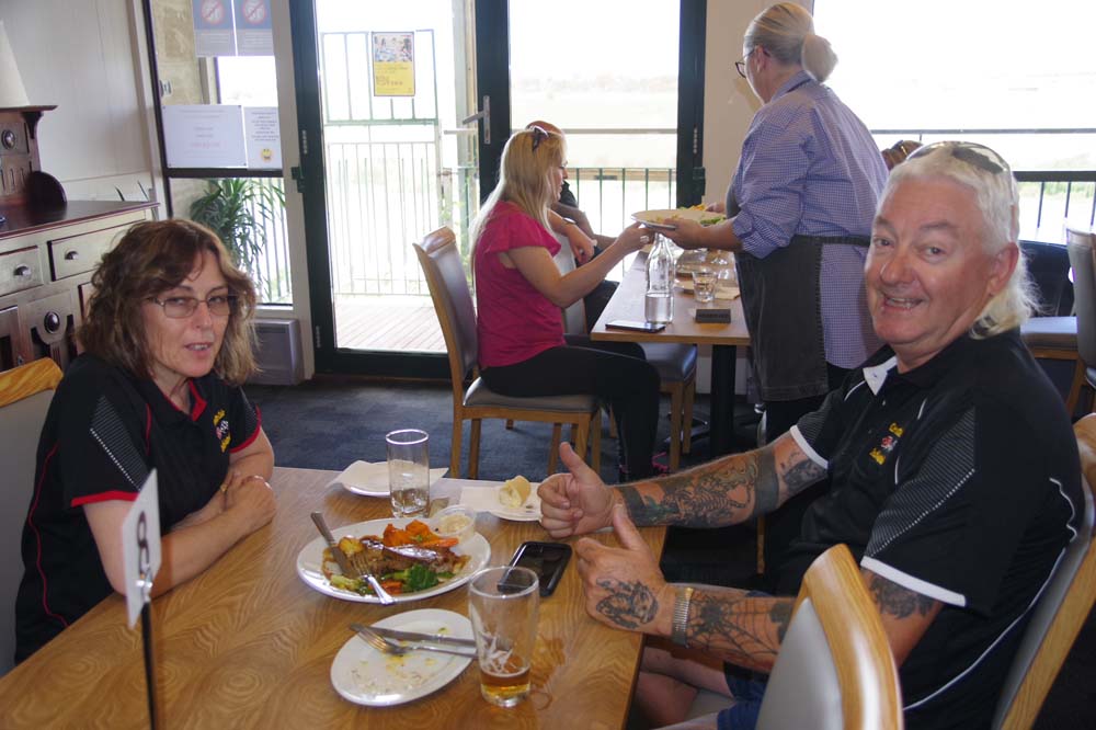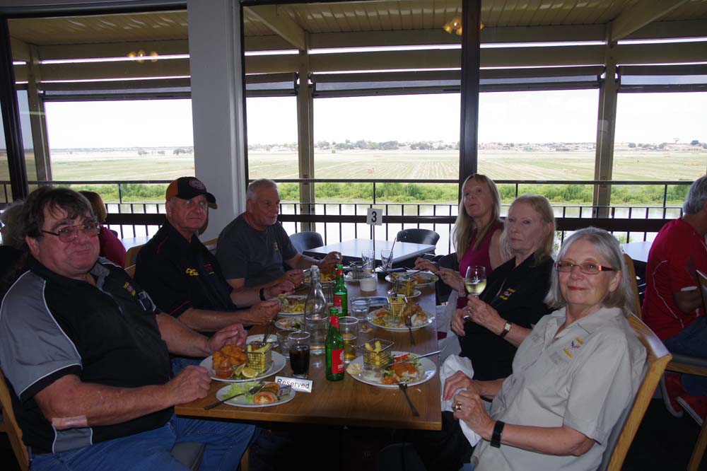 By now it was getting really warm and the showers made it very humid. Off to lunch at the Riverview Hotel. I heard someone didn't quite know which way to go when exiting The Bend onto the Dukes Highway so an accidental donut might have happened trying to sort directions out. MMM !!! No names